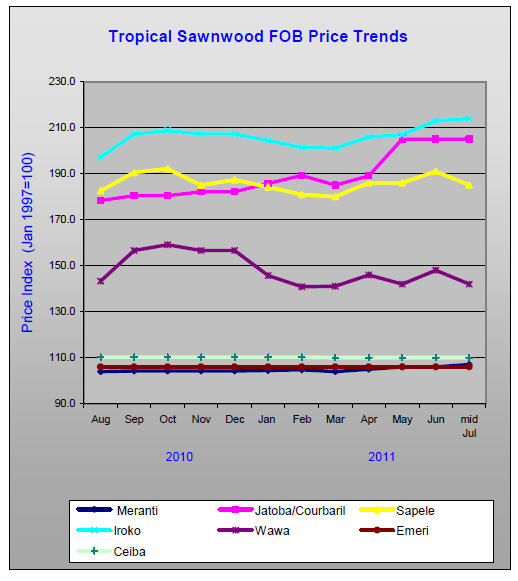 Source: ITTO' Tropical Timber Market Report |