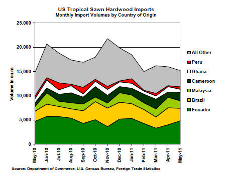 US imports of sawn tropical hardwood continue to decline