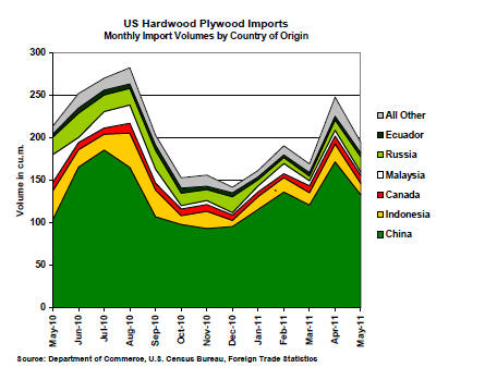 US hardwood plywood imports dropped by 22% in May
