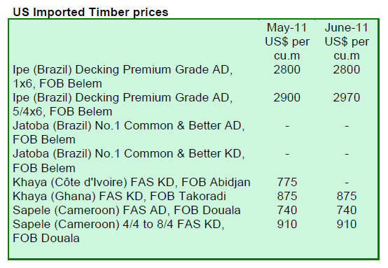 April to 1,697 cu.m. in May due to higher sapelli imports.