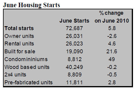 June 2011 new housing starts, says the JLR, were 72,687