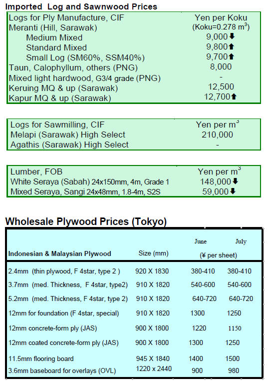 high side. In Japan, July wholesale log prices for Sarawak