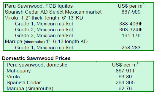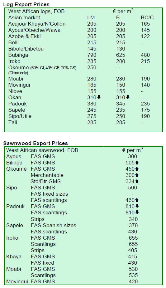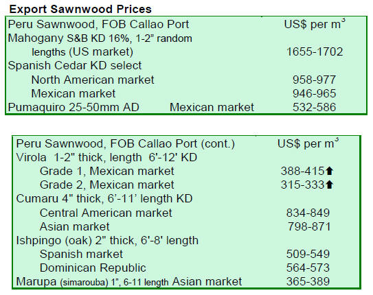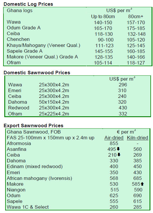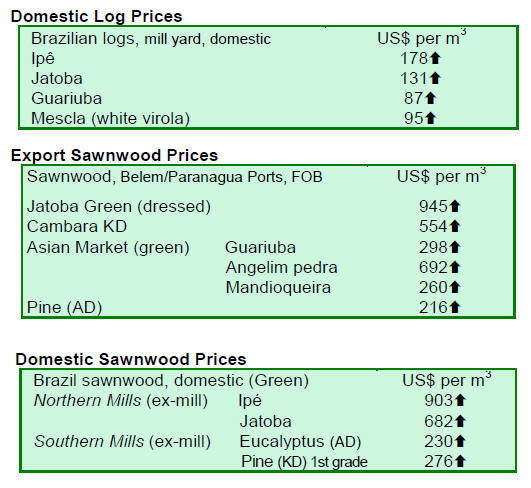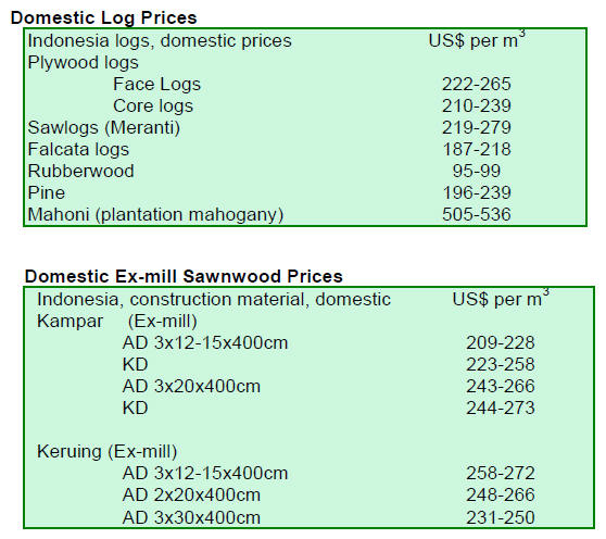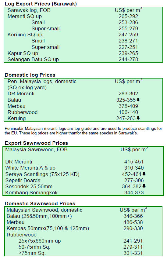 sawnwood prices also declined at the top of its range from