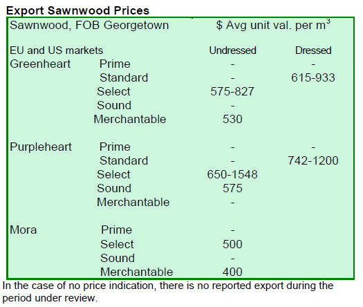 Dressed Greenheart prices remained firm compared to