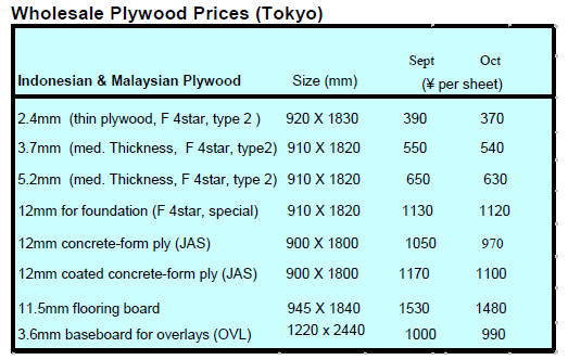 region as wholesale log prices in Japan continue to fall.