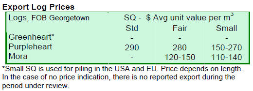 During the period under review no Greenheart logs were