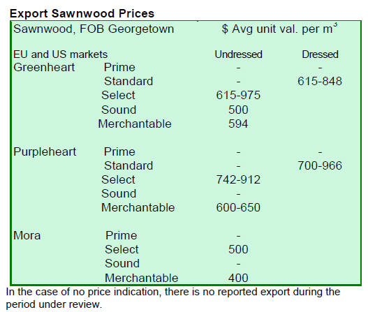 Dressed Greenheart sawnwood prices experienced a