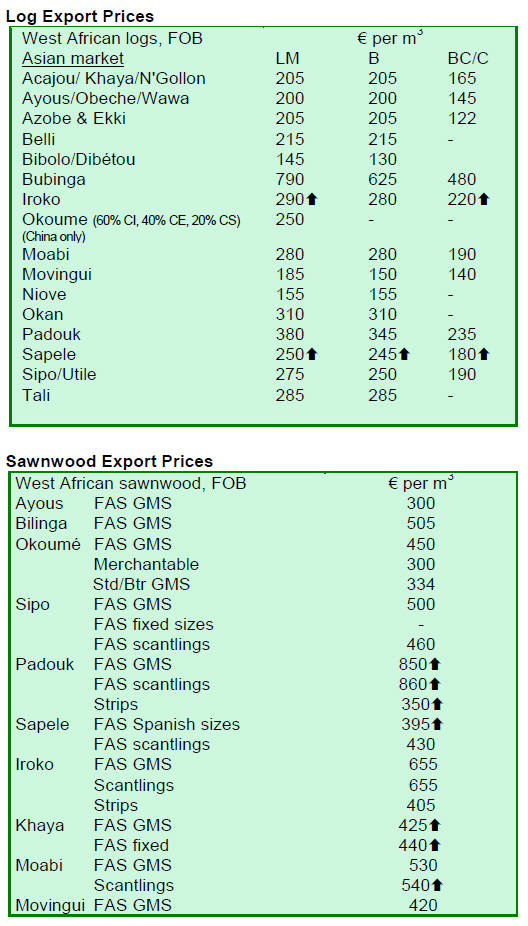 prices remained unchanged. Mora logs were exported and