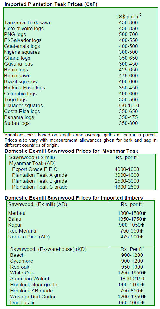 sawnwood prices remained unchanged on the export