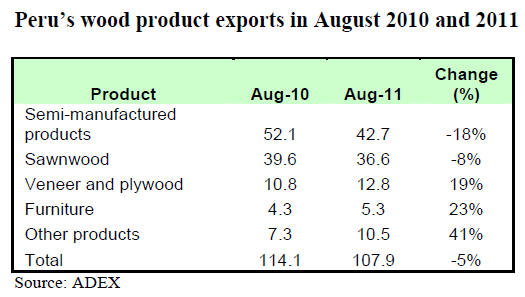 sawnwood from Peru was Mexico which accounted for