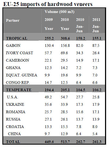 quarter of 2011 reached 105,000 cu.m. Quarterly imports