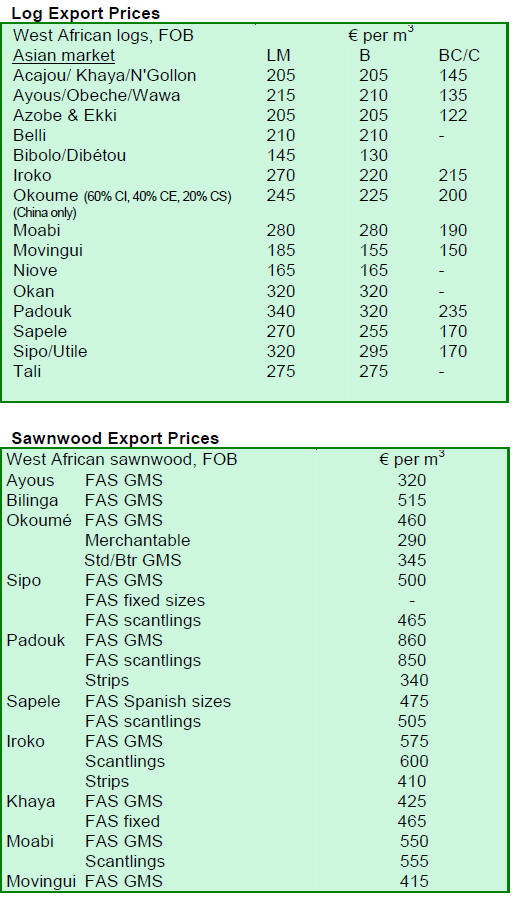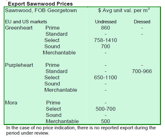 Dressed Greenheart sawnwood prices were firm in the