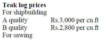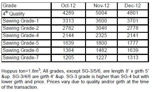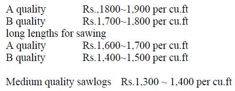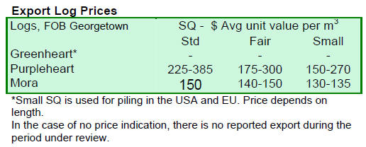 logs for export were priced at US$ 385 per cubic metre