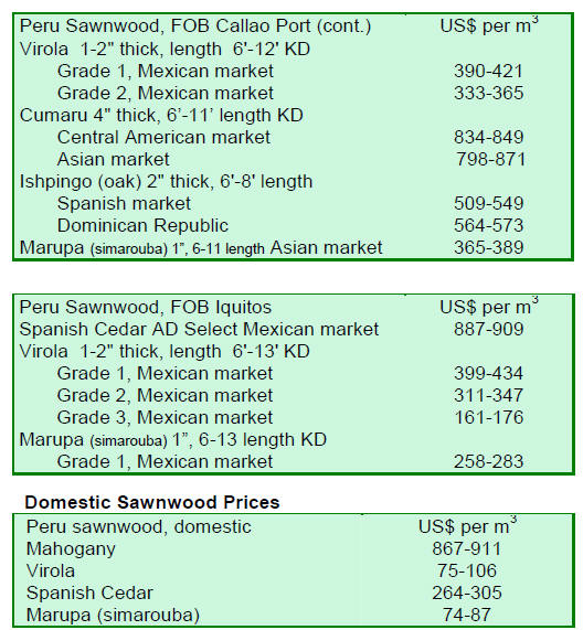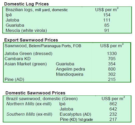 sawmill quality reached US$ 150 per cubic metre while