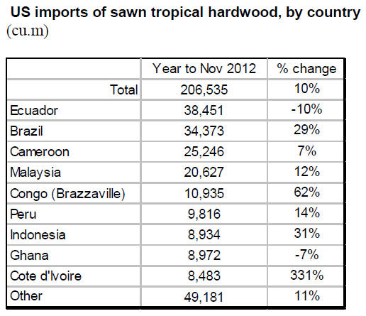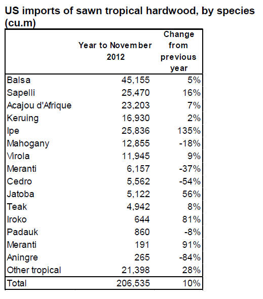 imports more than twice that of 2011 volumes. Jatoba and sapele imports