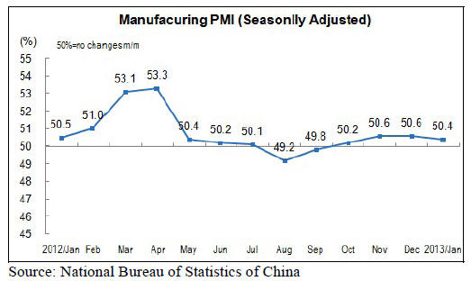 In January, China's manufacturing Purchasing Managers Index (PMI) was