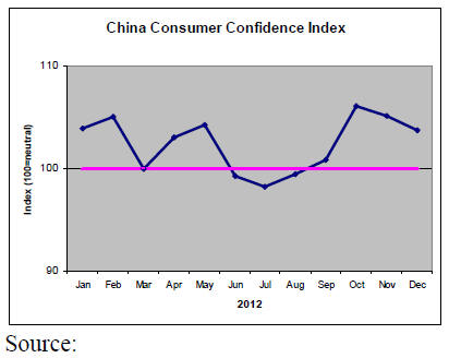 that Consumer Confidence levels in China fell to 103.70 in December of