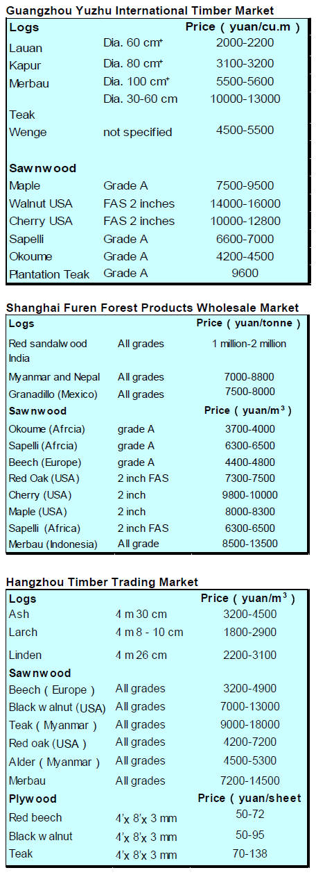 imported timber fell 13 percent to US$0.27 billion.