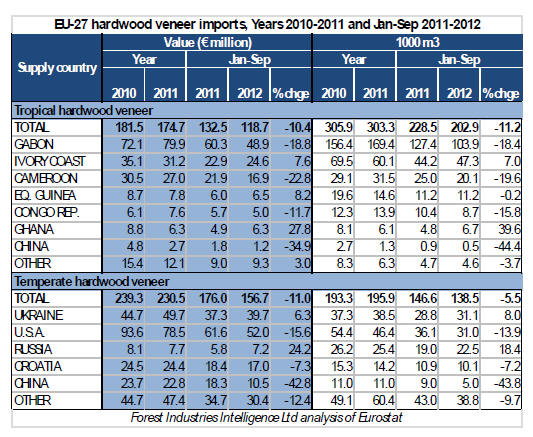 The decline in imports is not confined to tropical hardwood veneer. EU