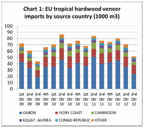 dramatic fall in tropical hardwood veneer imports from Gabon in the 3rd