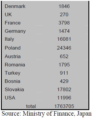 of office furniture to Japan accounting for approx 54% of imports. In