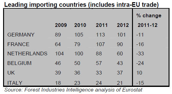 mouldings. Imports in 2012 were 138,000 cu.m, only 7% down on the