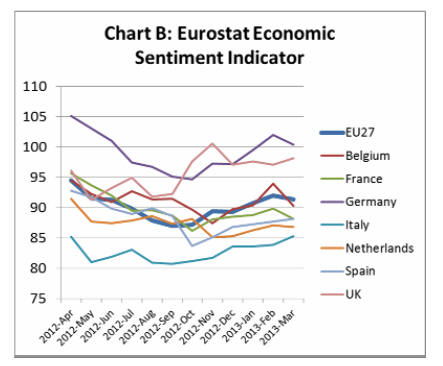 Similarly the Economic Sentiment Indicator (ESI) decreased in March in