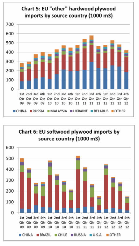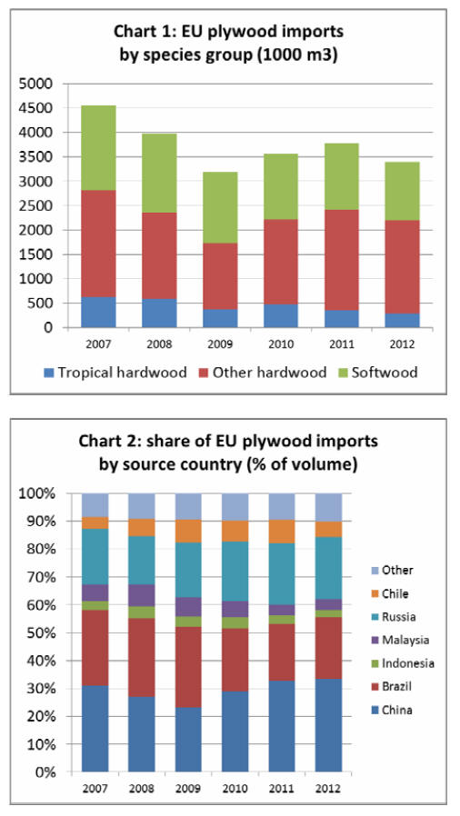 European plywood imports fell 10% in 2012