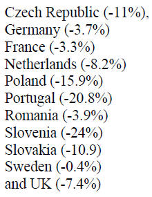 (+9.8%), and Hungary (+4.8%).