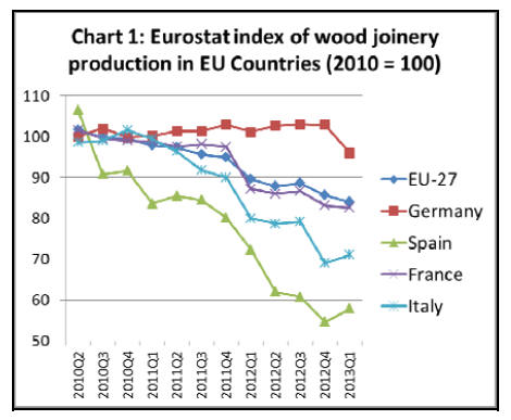 wood joinery activity for the EU27 group countries has declined in every