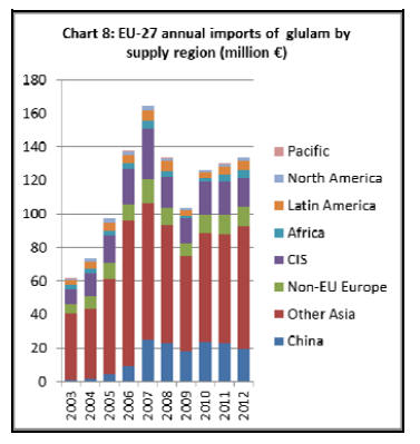 averaging around €1000 per cubic meter. EU imports of glulam in 2012