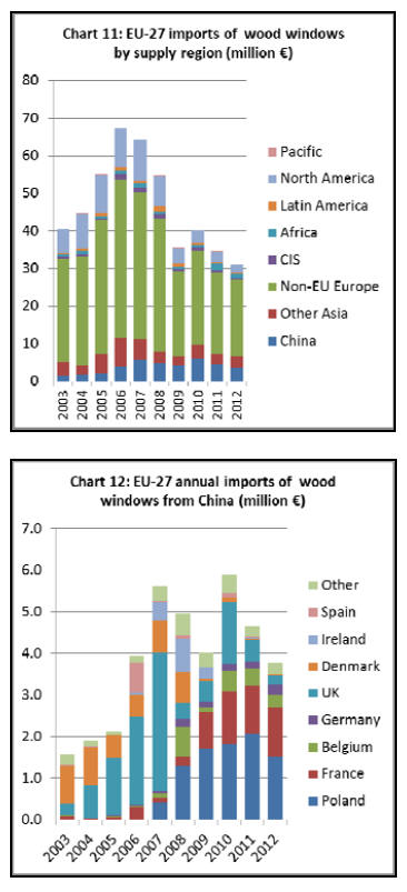 2011 to €31 million in 2012 (Chart 11). Most wood windows imported into