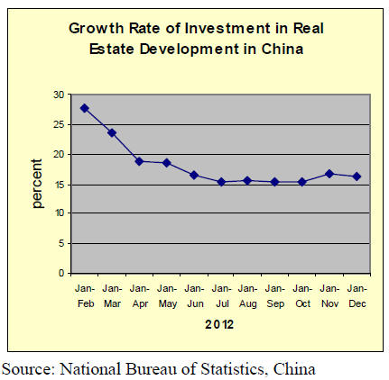 Chinese residential real estate sales in 2012 grew 14.9 percent