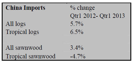 Imports of ¡®redwood¡¯ sawnwood have also increased and in 2012 China