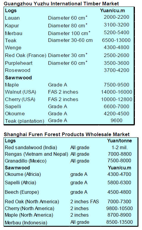 timber in China and to expand the range of species traded to China.