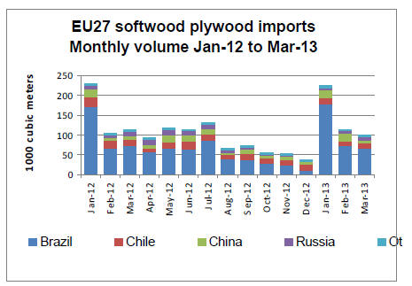 Chile. In March, after enforcement of EUTR, imports fell away quite