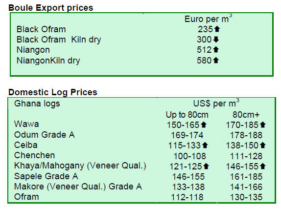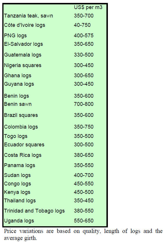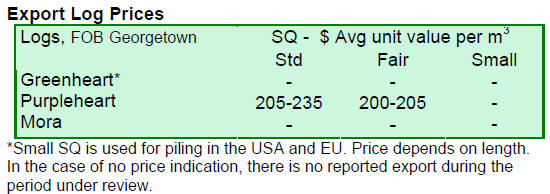 Roundwood (greenheart piles) secured good prices of US$ 599 per cubic metre
