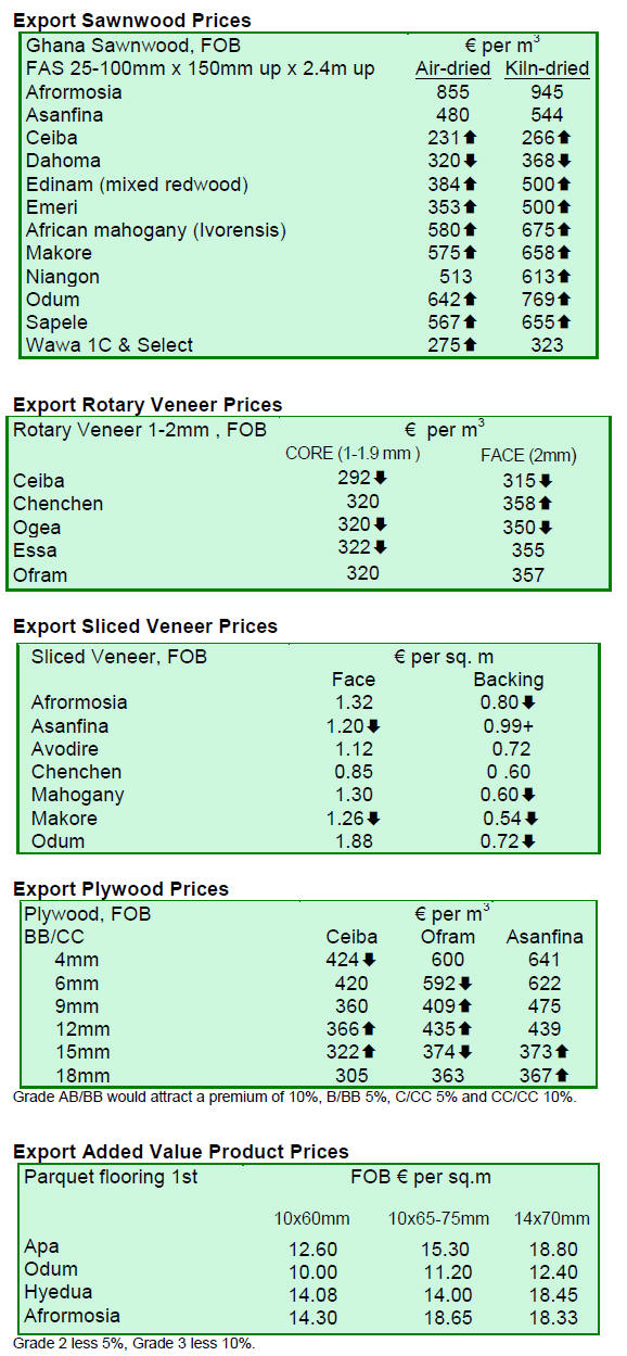 Undressed greenheart FOB prices eased in the period reviewed. Select Quality