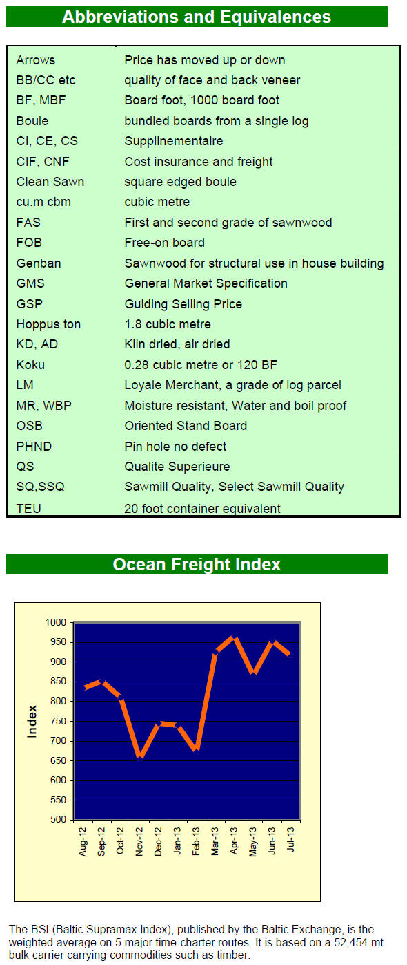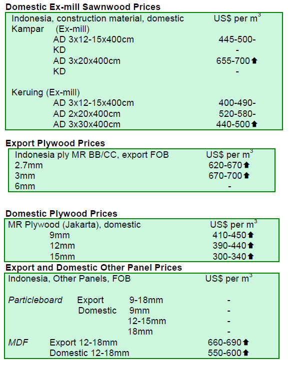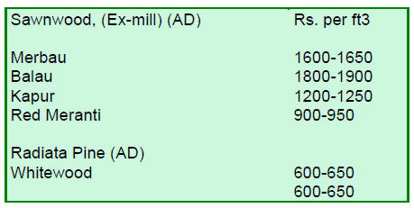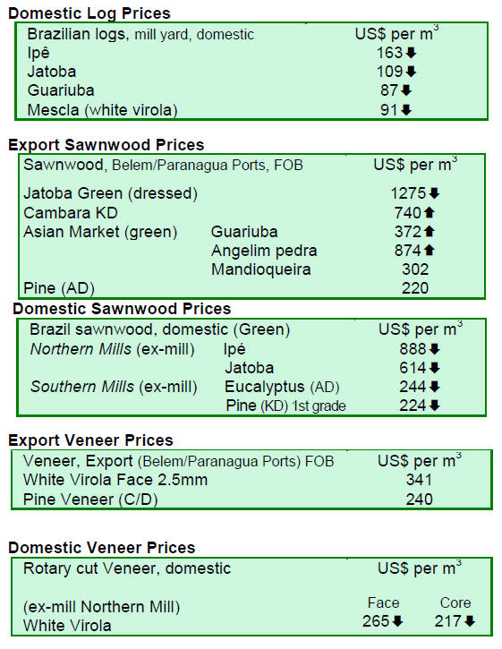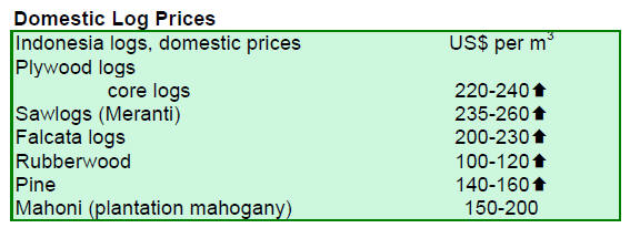 at top end FOB prices of US$205 per cubic metre. There were no exports of