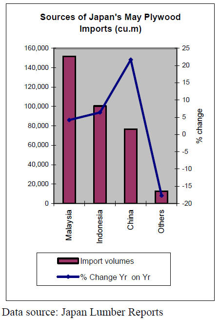 Total supply of plywood in May was 571,000 cbms, 7.7% more than May last