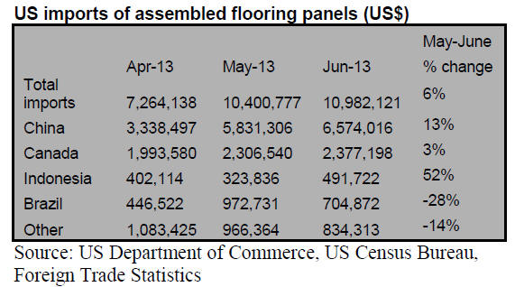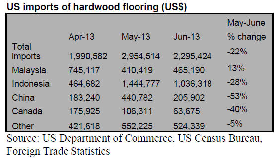 exception of Russia. Indonesia shipped 60,315 m³ in June,
