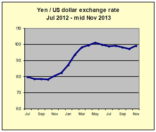 The sharp decline in the yen exchange rate to below yen