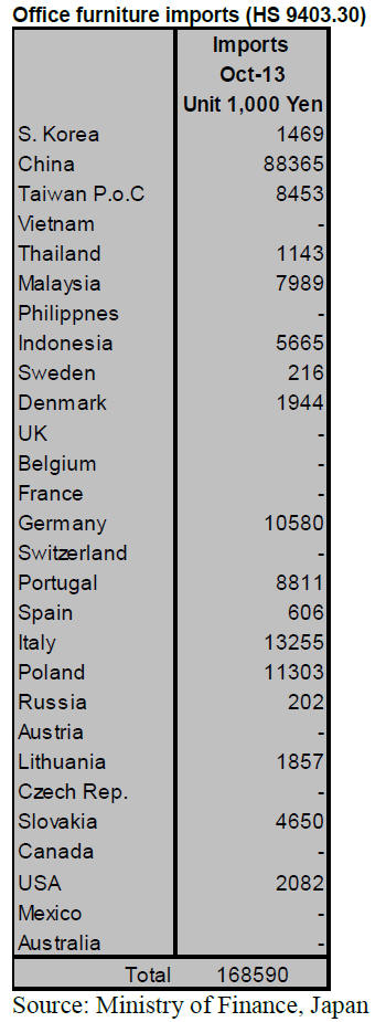 In October 2013 Japan‟s imports of office furniture