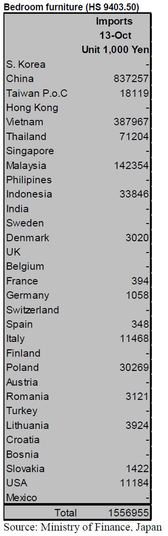 Japan‟s October imports of bedroom furniture rose to yen