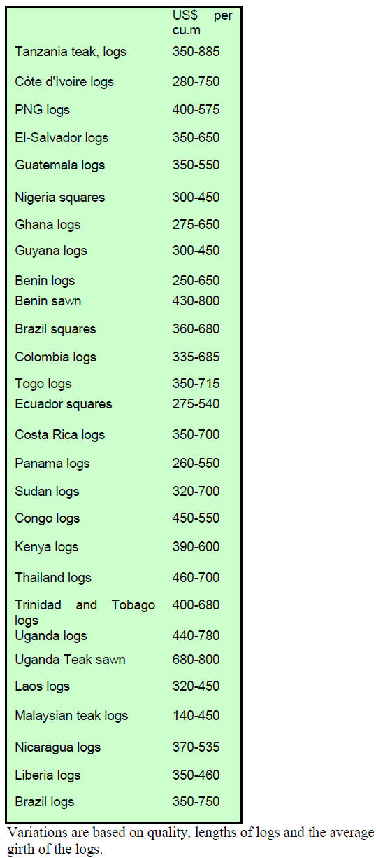 and top end prices were as high as US$1,885 per cubic