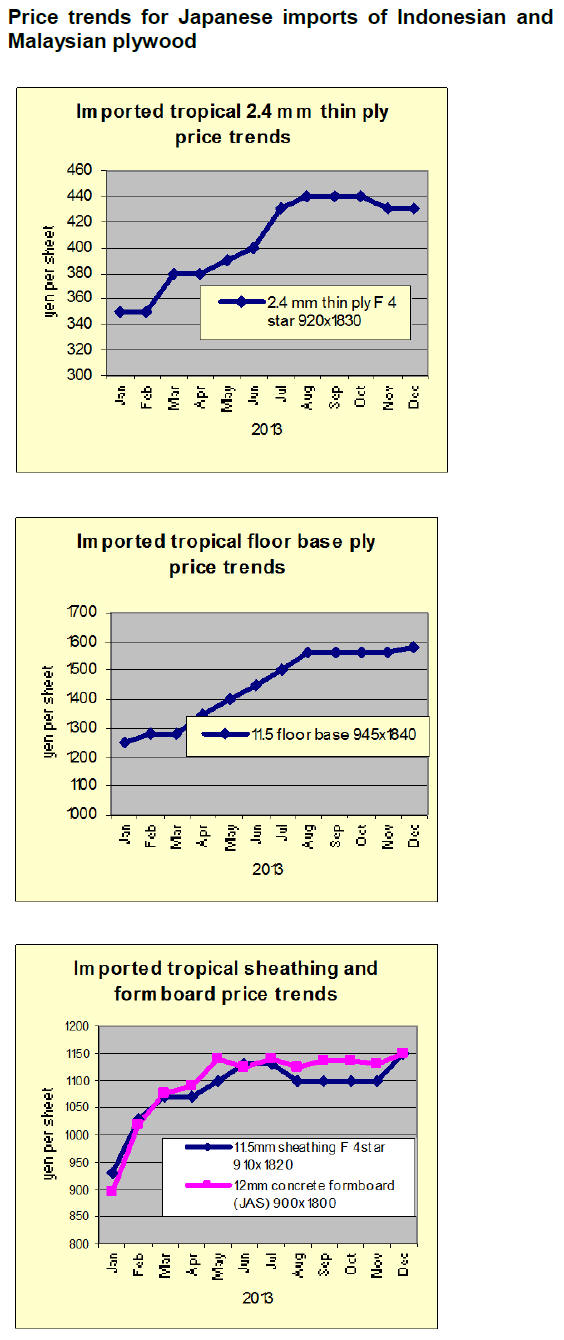 Import plywood prices in Tokyo market are soaring