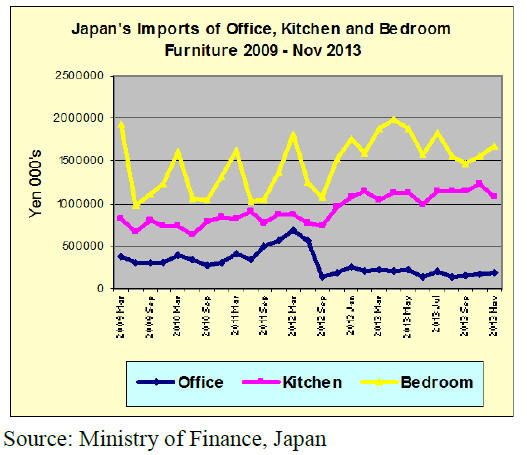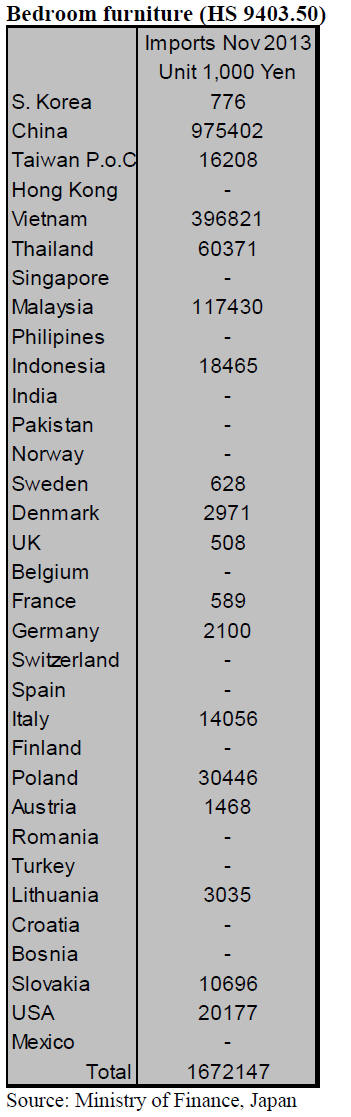 Japan‟s imports of bedroom furniture in November rose to