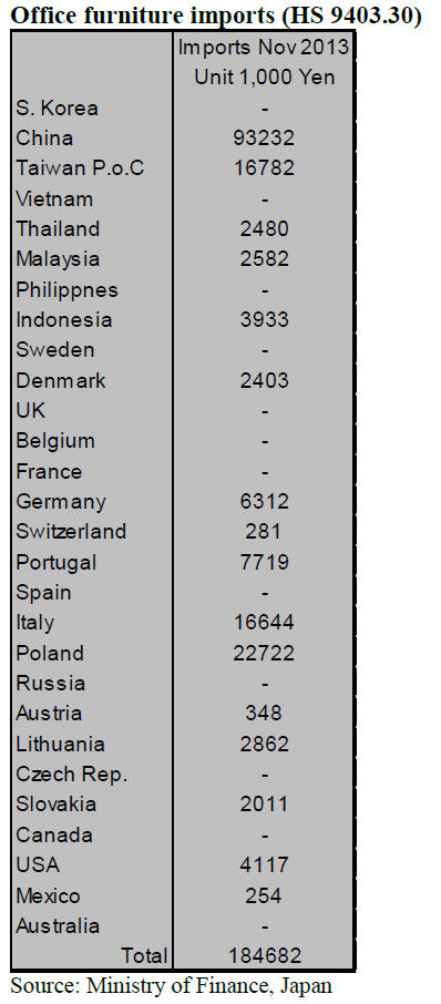 In November 2013 Japan‟s imports of office furniture