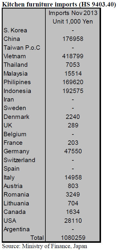 88.7% of Japan‟s kitchen furniture imports in November.