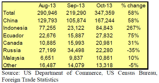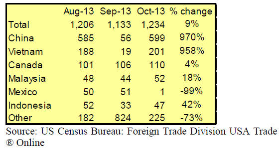 higher than in October 2012. China‟s shipments accounted
